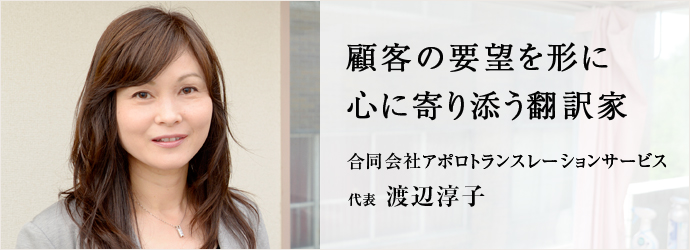 「仕事を楽しむ」とは‥ 好きなことは決して諦めないこと。そして、方向転換を恐れないことです。 (渡辺淳子) :: 企業情報 :: 合同会社アポロトランスレーションサービス 〒140-0011 東京都品川区東大井1-11-25-1806 ホームページ http://apollotsc.wix.com/apollotsc ※こちらのページは掲載終了しております。