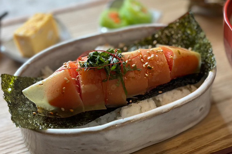 陶芸体験だけに力を入れているのではなく、食事の中心に“お米”を据えた、こだわりの和食を提供するのが、ろくろと米 とととの特長です。使用するお米は、昼は福岡県産のヒノヒカリ、夜は月ごとに数種を全国から厳選。いずれも玄米を毎日自家精米し、土鍋で炊き上げることで米本来の旨みを最大限に引き出します。