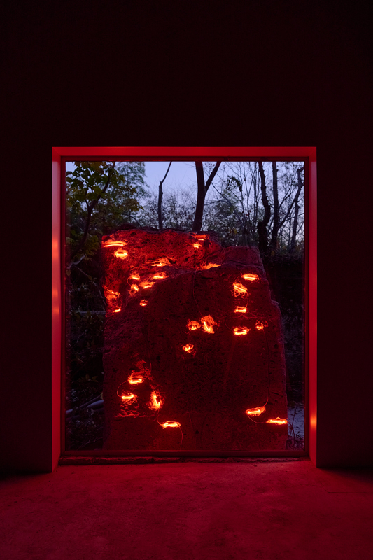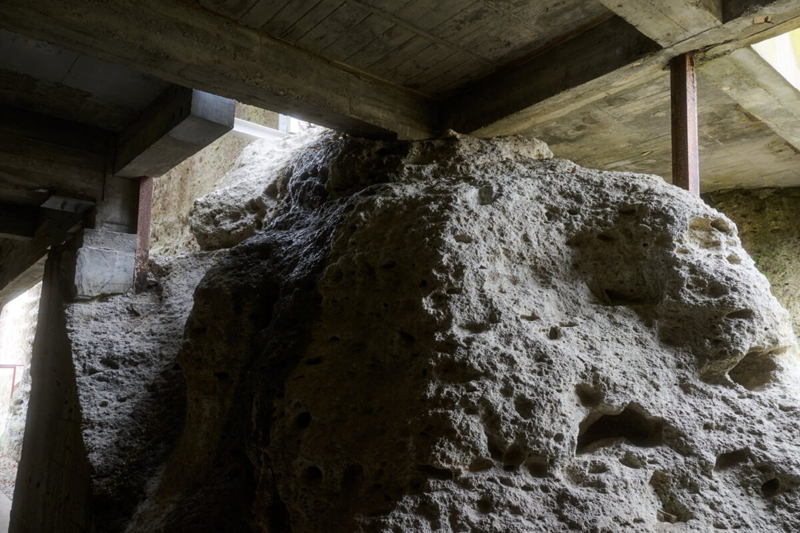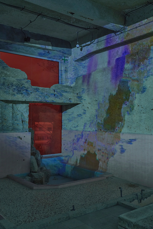 その象徴とも言えるのが、かつて浴場だったと思われる、館内1階に設けられたアートスペースです。常設展示を手がけるのは、多様な媒体を通じて自然や歴史といった要素をアート作品にし、ラグジュアリーブランドとのコラボレーションでも注目を集めるアーティスト、YOSHIROTTEN氏。フィールドリサーチを重ね、岩肌や石の質感、採掘の痕跡から着想を得て制作されたという作品群は、音や映像を用いたインスタレーションとして、屋内外が緩やかにつながった空間に溶け込みます。岩と建築、その間に生まれる余白そのものが表現の舞台であり、展示の一部として機能しているとあって、時間や季節、天候によっても違った表情を見せてくれることでしょう。このほか、企画展示エリアでは時期ごとに異なる表現が展開される予定。風景とアートが呼応し続けることで、“訪れるたびに更新される場所”として新たな時間を刻み始めた大谷グランド・センターから、目が離せません。