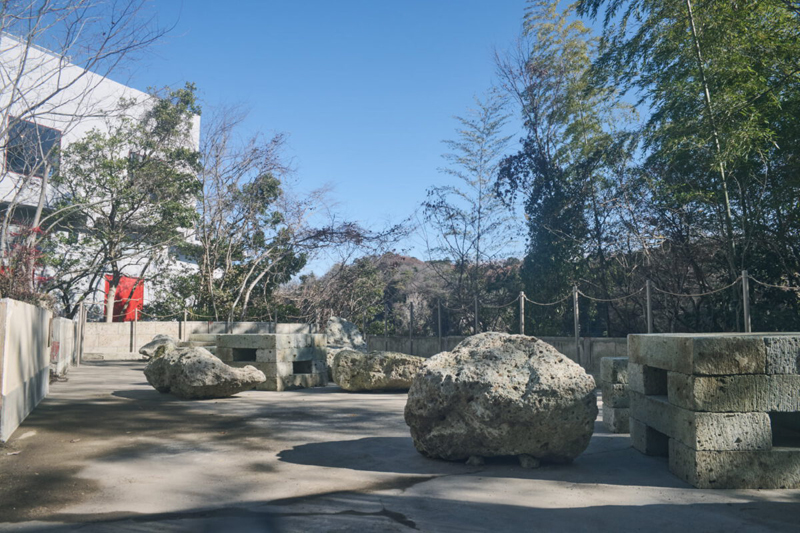 自然豊かなテラス。館内にあった大谷石に新たな命を吹き込んだ