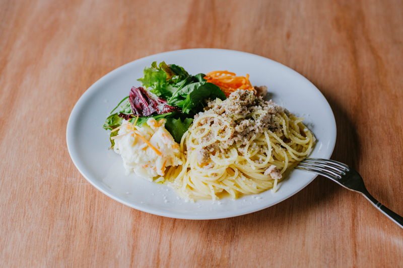 ランチタイムには、ピザやパスタ、タルティーヌなど、心もお腹も満たしてくれるプレート料理がおすすめ。パティスリーの色鮮やかなスイーツは、イートインはもちろん、テイクアウトも可能です。2人のシェフが、それぞれの立場で大谷の食材と向き合いながら生み出した、自由でありながら土地に根ざした“ローカルガストロノミー”の世界を、ぜひ味わってみてください。